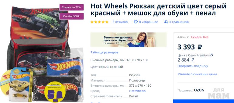Hot Wheels Рюкзак детский цвет серый красный + мешок для обуви + пенал