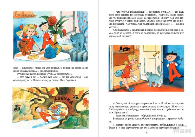 В книгу Ирины Токмаковой "Аля, Кляксич и буква "А". Три истории" вошли сказочные повести о приключениях отважной девочки Али в мире букв и цифр: "Аля, Кляксич и буква "А", "Может Нуль не виноват?", "Аля, Кляксич и Вреднюга". Учить буквы и цифры очень интересно! Особенно, если ты с ними знаком и знаешь про них что-то необычное. Например, что буква "Б" продаёт бублики, а хитрый Минус жить не может, чтобы что-нибудь не отнять. Дети прочитают увлекательные истории, выполнят все задания и незаметно для себя выучат буквы и цифры. Иллюстрации нарисовал народный художник РФ Виктор Чижиков.