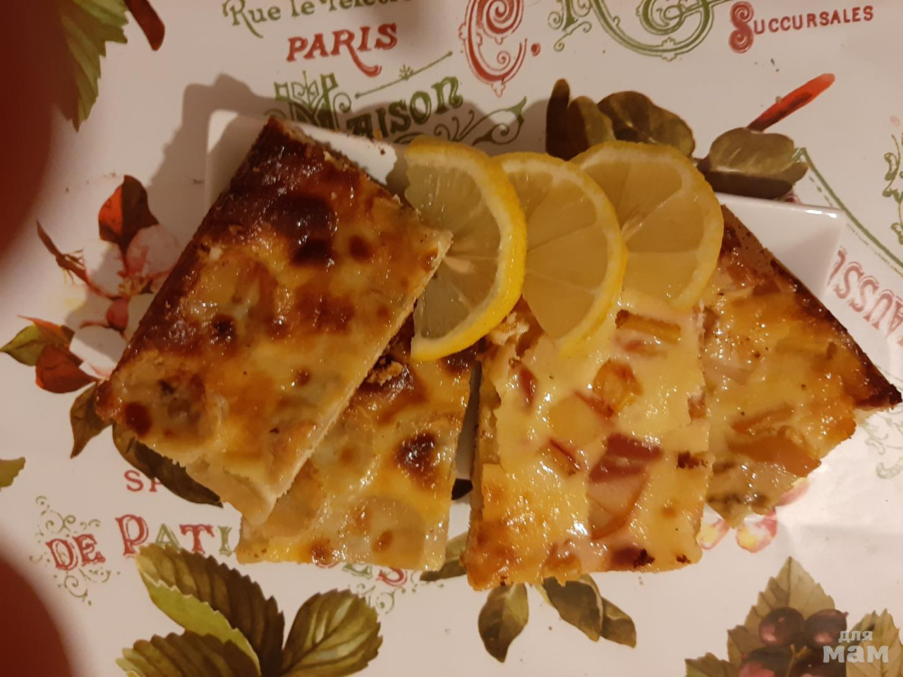 Остывший пирог вынимаем из формы. Нарезаем на кусочки острым ножом и зовем всех к столу!