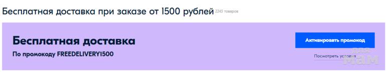 FREEDELIVERY1500 - Бесплатная доставка при заказе от 1500 рублей
