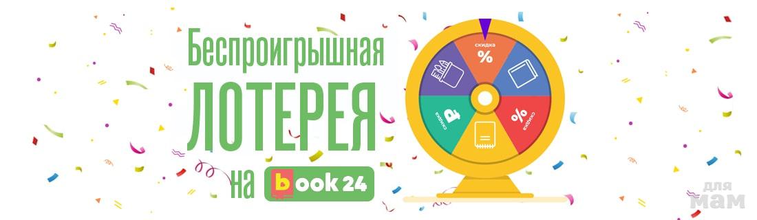 Беспроигрышная лотереяЧтобы получить промокод-приз, нажмите кнопку "испытать удачу" на странице Лотереи Book24.по 30 сентября