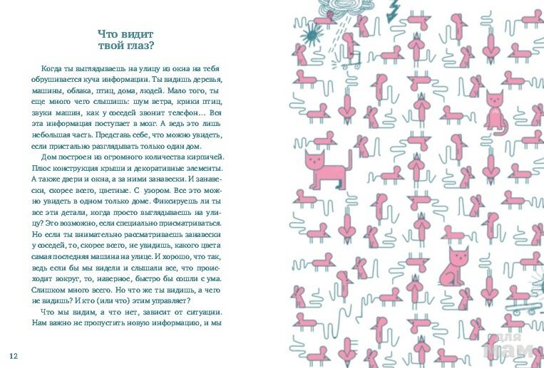 Эта книга — о самом интересном объекте для изучения. О нас самих. О том, что и как мы видим, как мы помним, как мы на самом деле чувствуем вкус, как нас вводят в заблуждение фокусники, о том, как работает реклама, как на нас влияет мнение не только близких, но и совсем незнакомых людей. С помощью примеров, тестов и игр вы с друзьями сможете проверить, как все это работает на практике. Бетте Вестера и Наоми Тиман, авторы этой книги, с ее страниц призывают читателей «Думай самостоятельно!». Почти как родители, которые говорят: «Живи своим умом, не делай все как Вася (Маша)». Но если вы по ходу чтения будете задаваться вопросами: «Да с чего они это взяли?», «А они на себе эти тесты проверяли?», «Откуда они вообще всё это знают, они же даже не психологи?», то считайте, что авторы достигли своей цели.