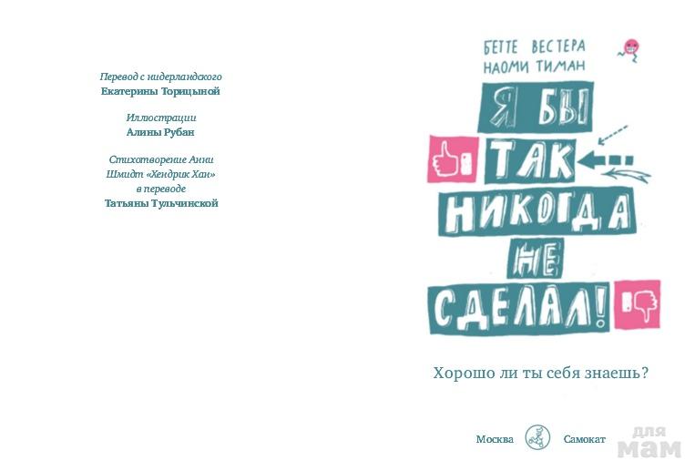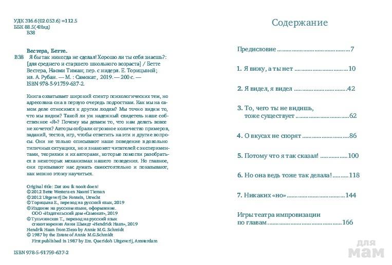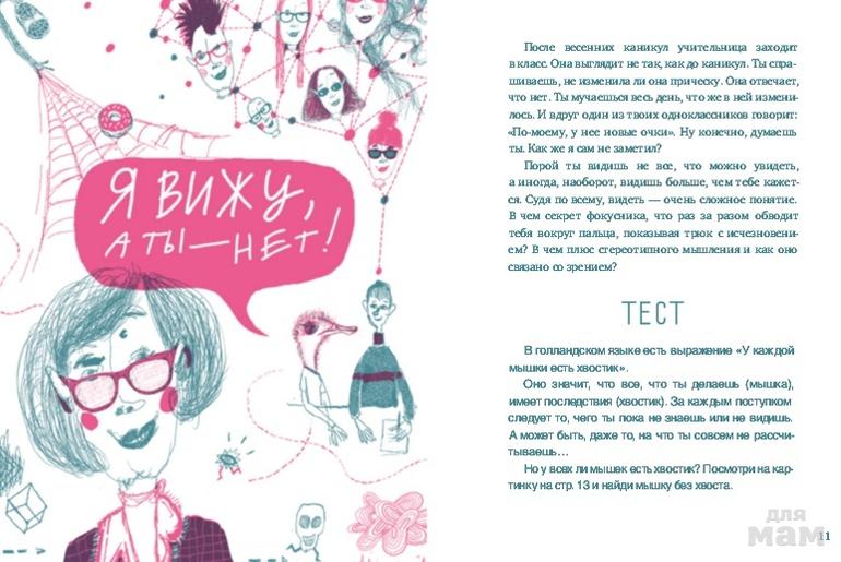Эта книга — о самом интересном объекте для изучения. О нас самих. О том, что и как мы видим, как мы помним, как мы на самом деле чувствуем вкус, как нас вводят в заблуждение фокусники, о том, как работает реклама, как на нас влияет мнение не только близких, но и совсем незнакомых людей. С помощью примеров, тестов и игр вы с друзьями сможете проверить, как все это работает на практике. Бетте Вестера и Наоми Тиман, авторы этой книги, с ее страниц призывают читателей «Думай самостоятельно!». Почти как родители, которые говорят: «Живи своим умом, не делай все как Вася (Маша)». Но если вы по ходу чтения будете задаваться вопросами: «Да с чего они это взяли?», «А они на себе эти тесты проверяли?», «Откуда они вообще всё это знают, они же даже не психологи?», то считайте, что авторы достигли своей цели.