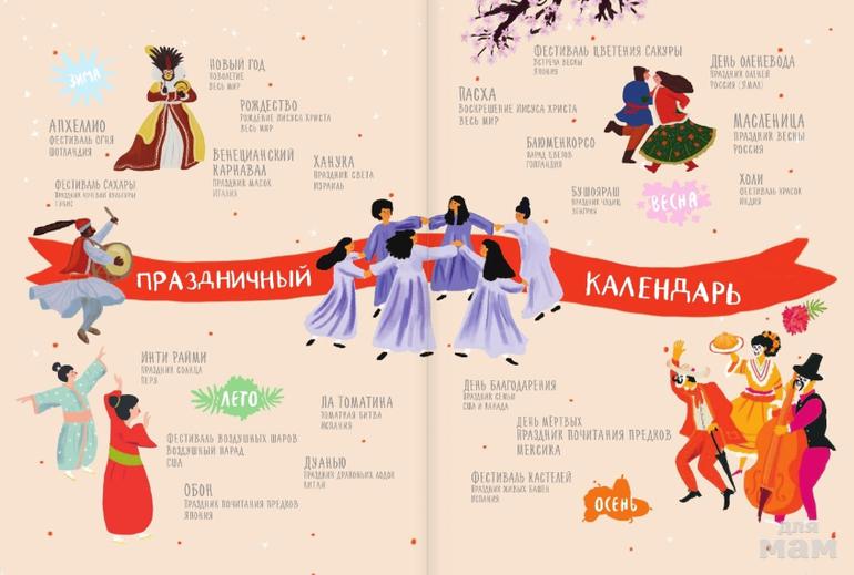 Почему символ русской Масленицы - румяный блинчик? За что на севере так ценят оленей, что даже устраивают целый праздник в их честь? И почему весь мир любуется, затаив дыхание, когда начинает цвести вишня? Здесь можно прокатиться на лодке, которая так похожа на самого настоящего дракона, устроить томатный бой или взобраться на верхушку "живой башни". На каждом развороте этой книги тебя ожидает знакомство с новым необычным праздником из разных уголков нашей планеты. А ещё ты сможешь познакомиться со сказками, легендами и мифами, посвящёнными этим самым праздникам и фестивалям