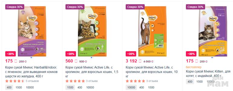 Скидка 30% по промокоду KOT30 на сухой корм для кошек Мнямс