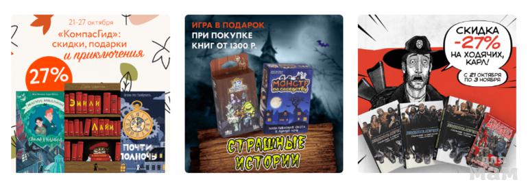 А при покупке книг из этого каталога на сумму от 1300 руб. вы можете выбрать в подарок одну из двух настольных игр: «Монстр по соседству» или «13 привидений».