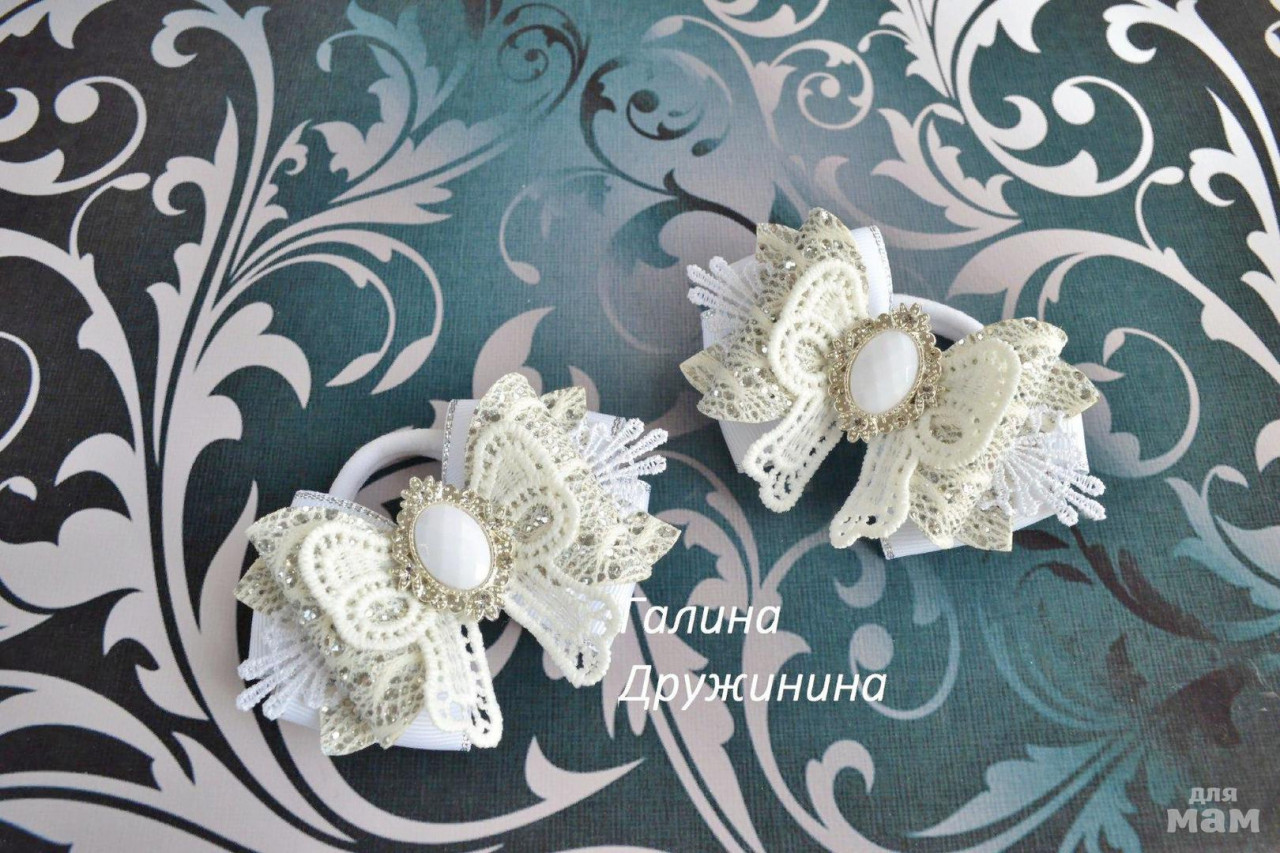 1) Белые бантики : экокожа, ювелирная серединка, кружево. Когда я их делала, то у меня не было цели сделать что-то зимнее. Но знаете, закончив их , я поняла , что они напоминают мне зимние узоры)
