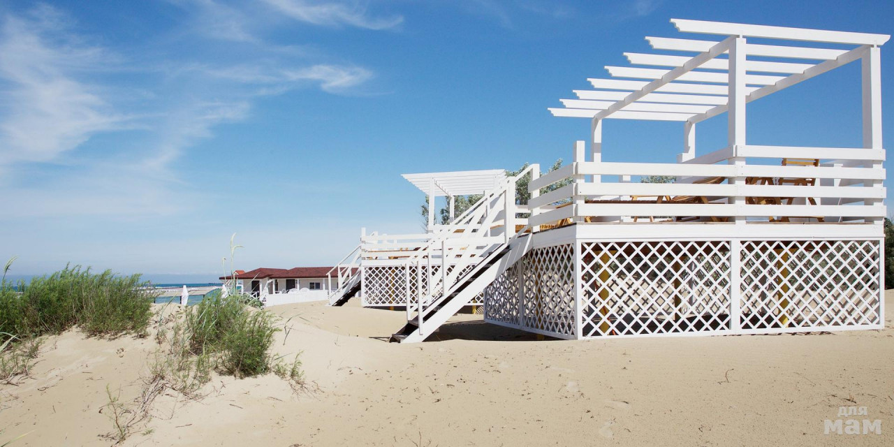 собственный песчаный, протяженностью более 500 метров расположен в 500 метрах от отеля. Пляж оборудован станцией промежуточного питания, площадкой для пляжного волейбола, раздевалками, душем, туалетом, зонтами и лежаками, пунктом выдачи пляжных полотенец. Проводятся анимационные мероприятия. Доставка на пляж осуществляется электромобилями до береговой линии, далее проход по деревянному настилу вдоль моря до территории пляжа.