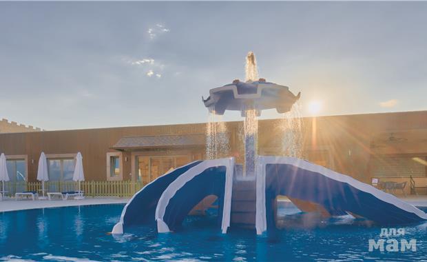 - детский бассейн (210 кв.м, глубиной 50 см) с 3 водными горками,
