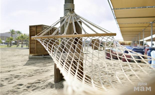 Шезлонги, зонты от солнца, туалеты, душевые и кабины для переодевания.