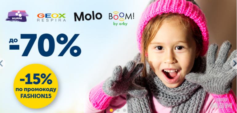 - 15% по промокоду на Molo, Huppa, Boom by Orby, Geox
