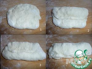 Перед последним складыванием тесто гладкое. После последнего складывания тесто становится "как перчатка".