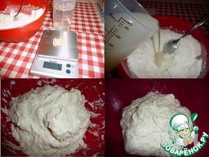 Дрожжи растворить в воде. Муку смешать с солью. Влить дрожжевой коктель в муку. Замес деликатный, ручной. Если тесто плывет, следует добавить немного муки. В готовых изделиях мы должны получить крупные поры.