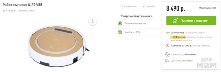Робот-пылесос iLIFE V55 с использованием промокода ЛЭТУАЛЬ2000 за 6792 р