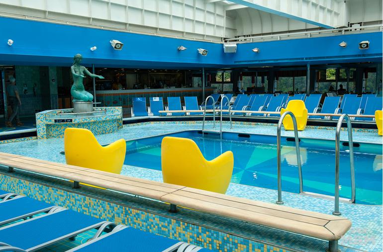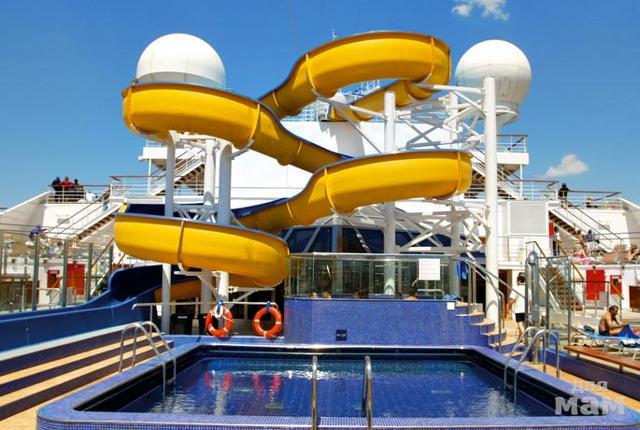 На борту есть 3 бассейна, один из которых накрывают стеклянной крышей в случае плохой погоды. Для развлечений отведено 3 палубы, на которых есть 11 баров, рестораны, холлы, казино и многое другое. Как и на всех других лайнерах этой компании, на борту есть маленькая часовня. Так же на борту вы найдете маленькую библиотеку, интернет - центр, карточную комнату, картинную галерею, комнату видео игр.