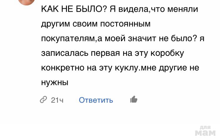 Несколько человек получили замены по договоренности (только одну куклу попросили в пристрой поставить) - так же и этой девушке была предложена почти такая же кукла (одежда, хвостики , только бантиков не было) или любая на замену из 8 других .