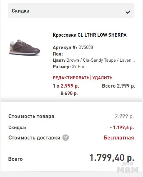 ХУДИ REEBOK 1 440 р. вместо 3 999 р.