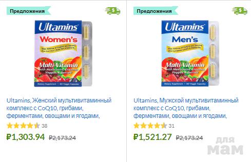 Скидка 40% на женские и 30% на мужские витамины премиального бренда Ultamins