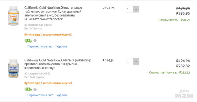 при совместной покупке из раздела "дети", "питомцы", "дом" или "бакалея", "спорт", "добавки"