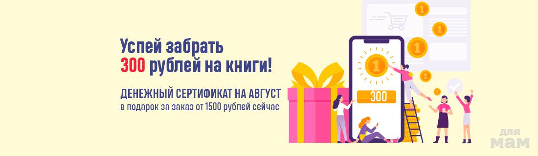 Сертификат на 300 рублей в августе в подарок за заказ от 1500 рублей с 1 июля по 3 августа (код 300РУБЛЕЙ)