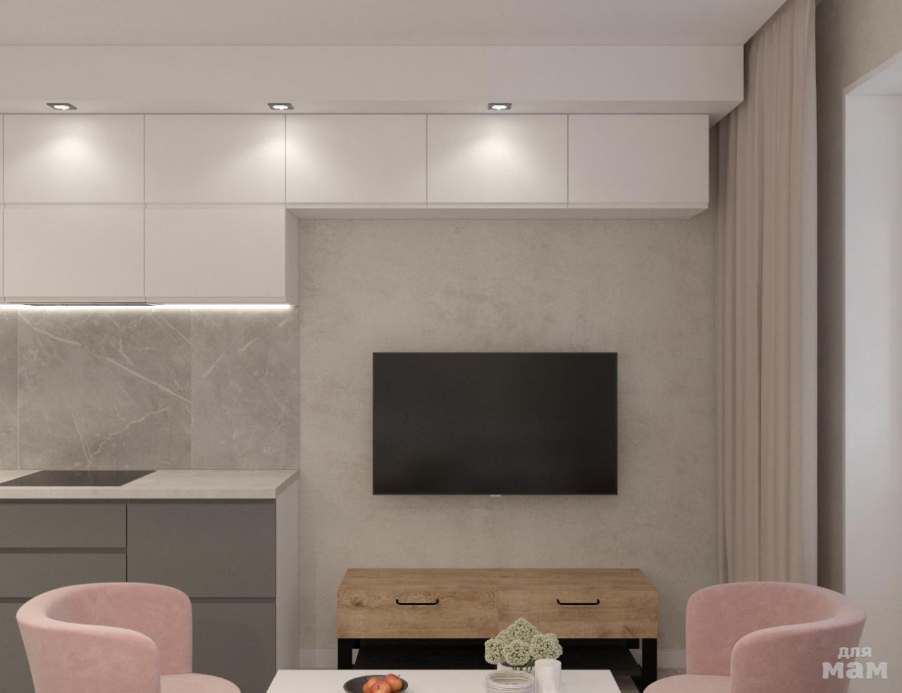 На данный момент нет еще буфета,тумбы под ТВ и кресел.