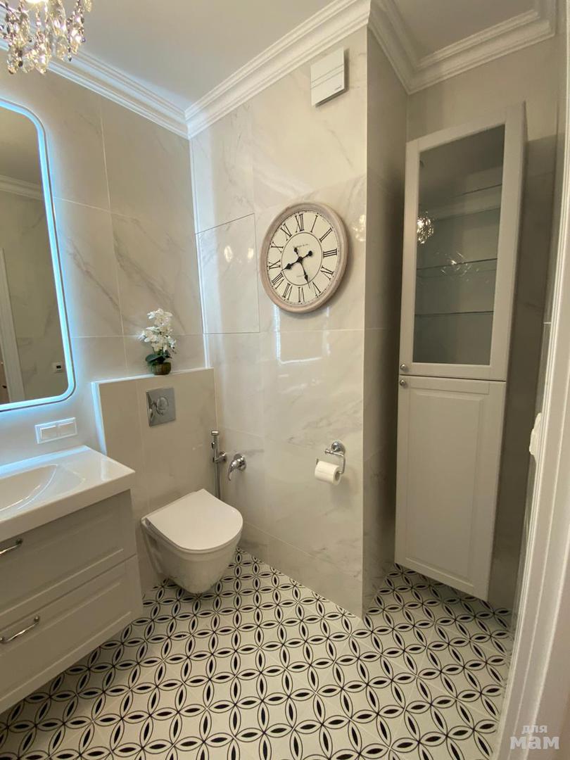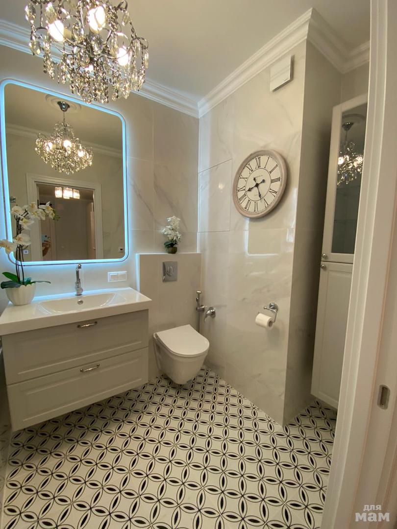 Унитаз планировали отдельностоящий, но в процессе заменили. Также поменяли цвет акцентной плитки. Вот что получилось)