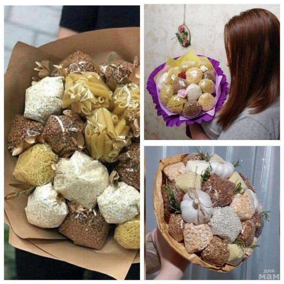 Вот такие продуктовые букетики скоро будет очень популярны, думаю так. Как вам такое художество? Креативно? Смотрится и выглядит как то не очень. бэээ. Ну а чо. Цветы уже будет скоро не актуальны, тк будут очень дорогими и жалко их - вян...
