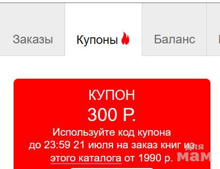 Друзья, с 12 по 21 июля воспользуйтесь купоном на 300 р. при покупке книг вот этих издательств на сумму от 1990 р. Купон хранится в вашем Личном кабинете в разделе «Купоны».