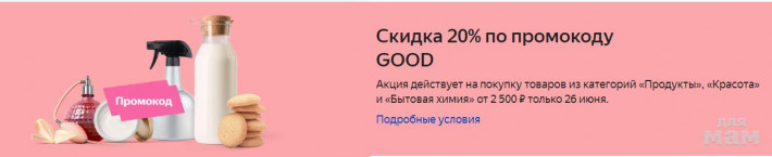 Скидка 20% по промокоду GOOD при покупке продуктов, товаров для красоты и бытовой химии на сумму от 2 500 ₽ https://fas.st/esJZ42