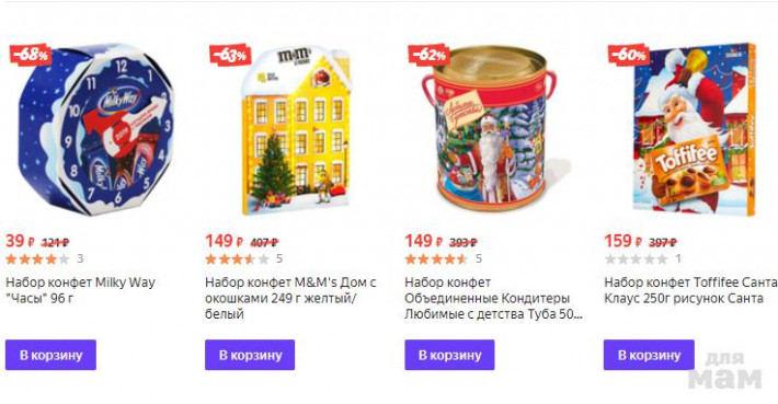 Скидки до 68% на шоколадные конфеты в коробках, подарочные наборы