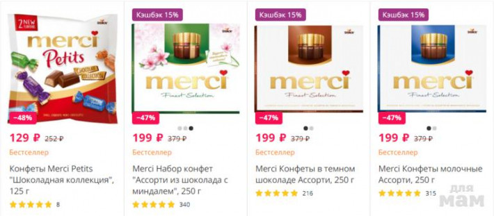 Глазурный берег -66%Merci -47%+FOODCASHBACK15 - кэшбэк 15% при покупке продуктов питания на сумму от 1700 рублей по 19 июля