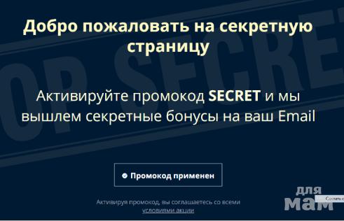 Активируйте промокод SECRET и мы вышлем секретные бонусы на ваш Email