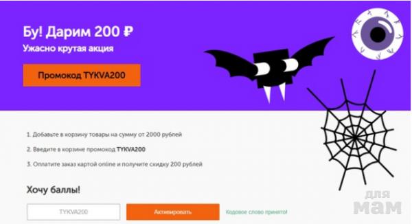 TYKVA200 — скидка 200 рублей при заказе от 2000 р. и оплате картой онлайн