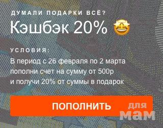 С 26 февраля по 2 марта пополните счет на сумму от 500р. и получите 20% от суммы пополнения в подарок!