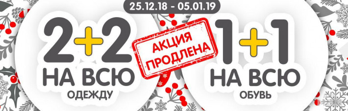 Подление акции 2+2 на одежду и 1+1 на обувь