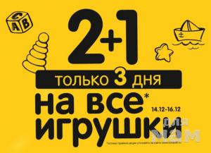 В период с 14 по 16 декабря купи две игрушки - и третью получи в подарок.