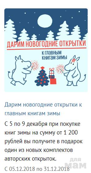 С 5 по 9 декабря при покупке книг зимы на сумму от 1 200 рублей вы получите в подарок один из новых комплектов авторских открыток.