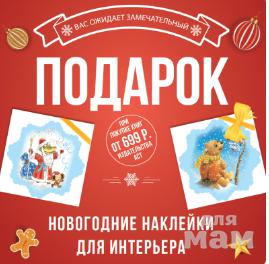К заказу от 699 рублей вы получите в подарок наклейки на окно, которые создадут уют и будут напоминать о приближении долгожданных новогодних праздников.
