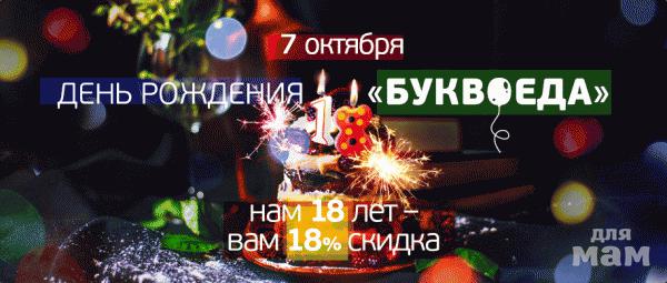 А с 6 по 8 октября будет действовать 18% скидка, в честь дня рождения «Буквоед», на книги, игры, подарки для любимых, товары для творчества и многое другое!