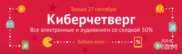 27 сентября 2018 года на сайте издательства Миф большая распродажа "Киберчетверг": скидка на все электронные и аудиокниги 50%!