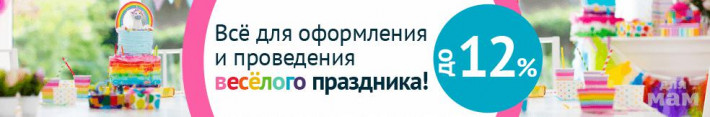 приобретайте колпачки, хлопушки, свечки, тарелки, салфетки, стаканчики для весёлых вечеринок и фееричных праздников со скидкой 12%!