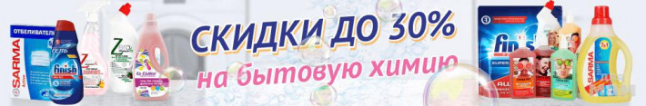 превратите ежедневную уборку дома в праздник с чистящими средствами торговых марок LaChista, Sarma, Zero, Finish и Organic People, на которые действуют скидки до 30%!