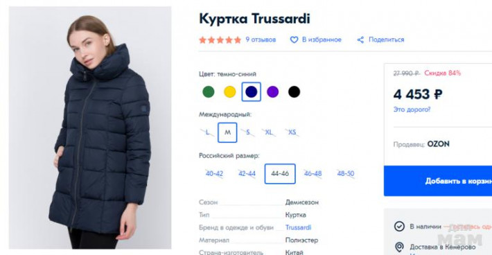 Куртка Trussardi -84%все Актуальные тренды и межсезонная коллекция со скидкой -84%