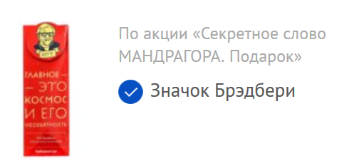 МАНДРАГОРА — значок Брэдбери в подарок при заказе от 1000 руб.