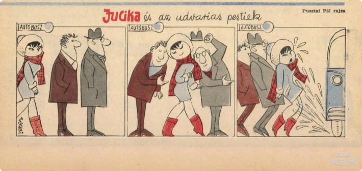 Венгерский художник-мультипликатор Пал Пуштай /Pusztai Pál/ (1919-1970) в 60-х гг. создал персонажа Jucika (Юцика), которая быстро сыскала любовь среди взрослых венгров тех лет.. Сейчас это называют мини-космиксами, но сам автор называл это ...