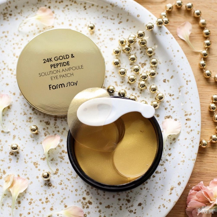 Премиум-уход за нежной кожей век. Патчи, пропитанные ампульной сывороткой с 99,9% чистого золота и комплексом пептидов оказывают восстанавливающее действие, помогают избавиться от существующих признаков увядания кожи и продлить её молодость. Патчи увлажняют и успокаивают кожу, уменьшают отечность и круги под глазами, при регулярном применении способствуют осветлению и разглаживанию кожи.