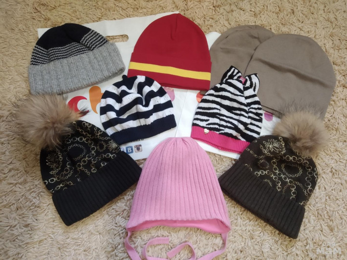 Пристрою новые шапочки Чоби, новые в фирменных пакетах но без бирки, к теплым идут пакетики для стирки изделий. Все размер М, с помпонами размер единый (коричневая справа продана). Цены от 750р. до 2300р. Остались полосатый берет, слева, розовая первый ряд и две хаки, остальное продано.