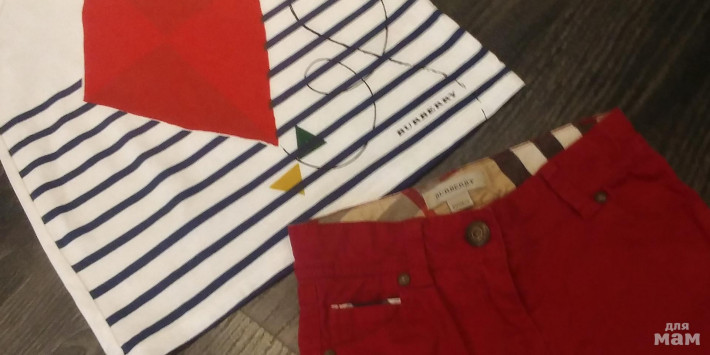 Burberry, р.5/108 брюки 6/116 футболка, вместе отлично, потом можно как капри, утяжка 3000р