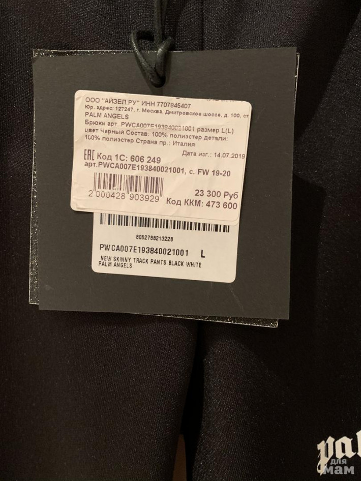 Новые брюки Palm Angels, оригинал. Маркировка L, маломерят на 44 рус.