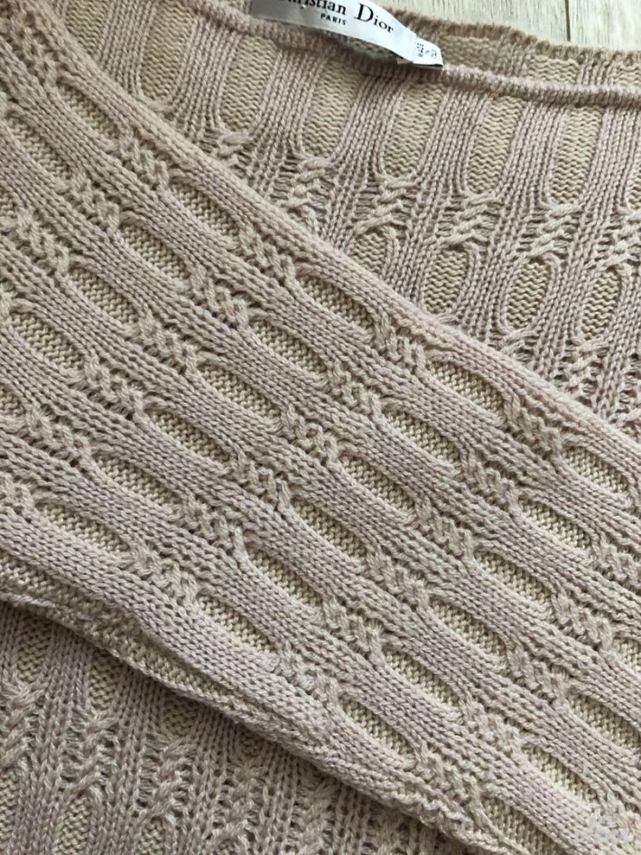 1) очень нежный удлинённый свитер 100 % кашемир , рукав укорочен ниже логтя 3/4 . Нежный оттенок пыльной розы с ажурным рисунком . Под узкие джинсы , кожаные брючки . Стоил очень дорого . Размер М .